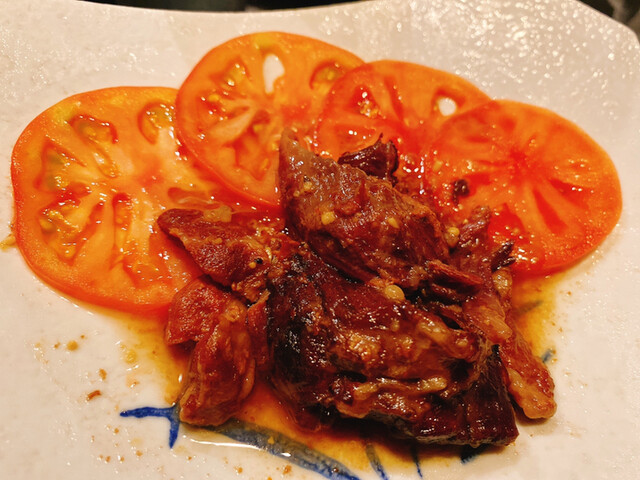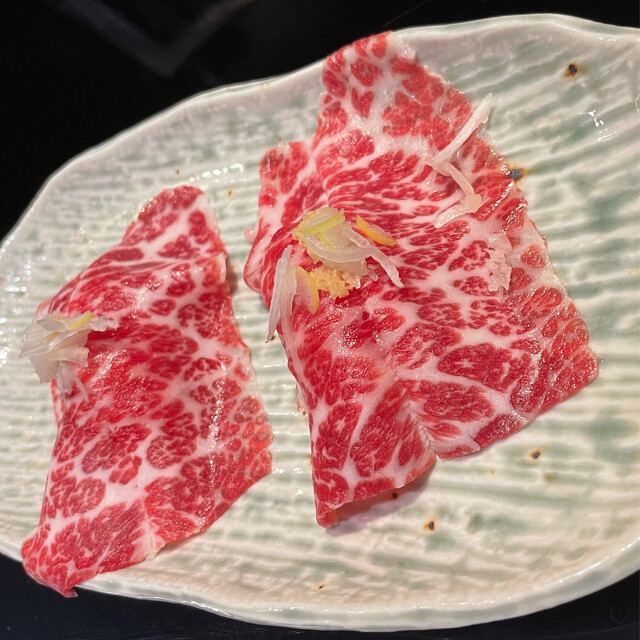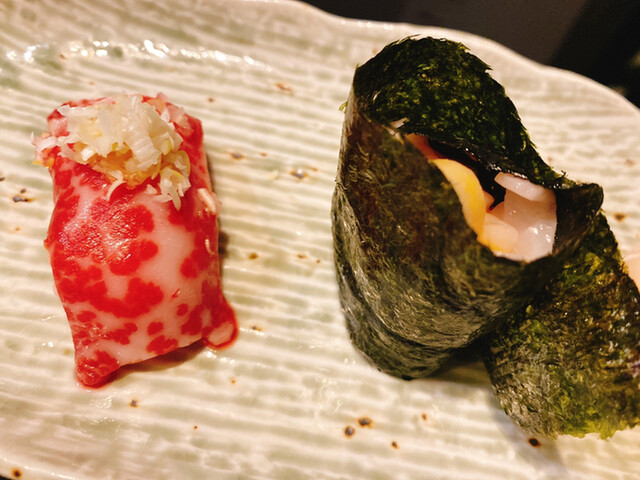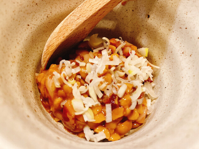 閑静なエリアにひっそり隠れ家風、入口からすぐ黒を基調にシックなカウンターもクラブかバーのよう…なのに事前の予約で直送された馬刺しのコースはまず納豆和えからの意表を突くスタート。