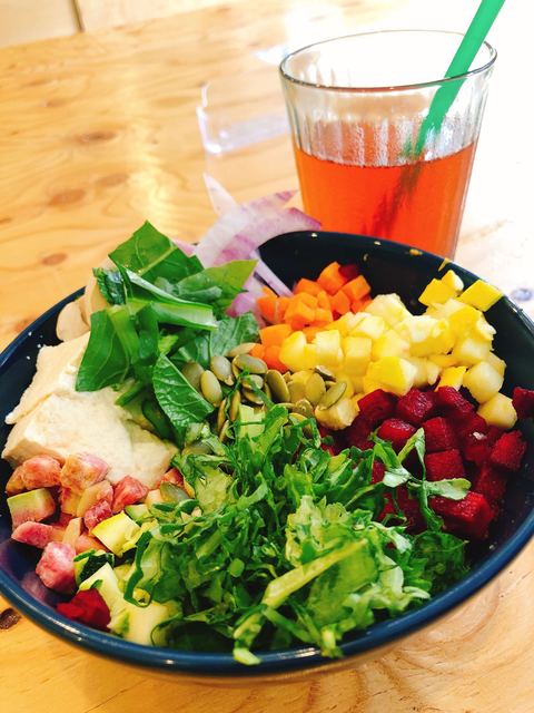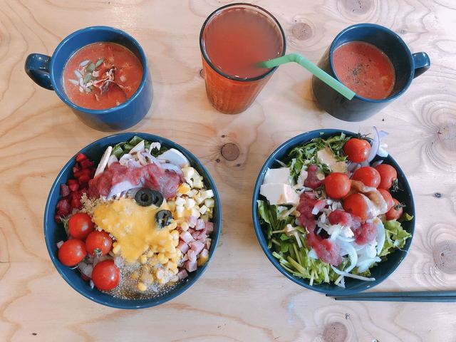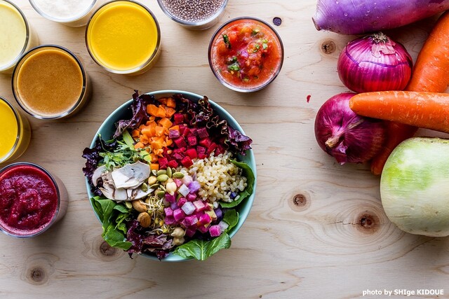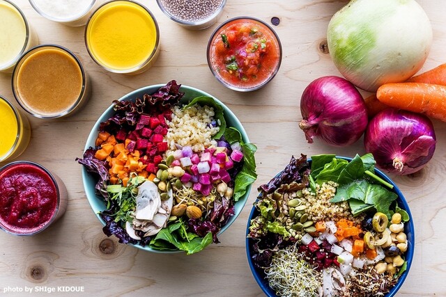 ジュース&サラダバー!一日中サラダビュッフェ&デリで様々な有機野菜を食べ放題詰め放題!