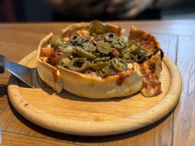 数年前にシカゴピザブームがあったらしいが、全然知らなかった。アメリカの料理文化が大好きなので、ピザの歴史を調べていたところ、いわゆるオーソドックスな薄い生地のニューヨークスタイルのピザと双璧をなすのが、このシカゴピザ。日本でいうなら、お好み焼きの広島風か。