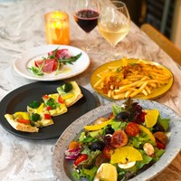 17時以降、テラス席限定でご提供するお得なコースメニュー 前菜からピザまで食べられて、 スパークリング、ビールを含むアルコール飲み放題付き ※テラス席はワンちゃんの同伴OKです(ワンちゃんはチャージ料いただきません)
