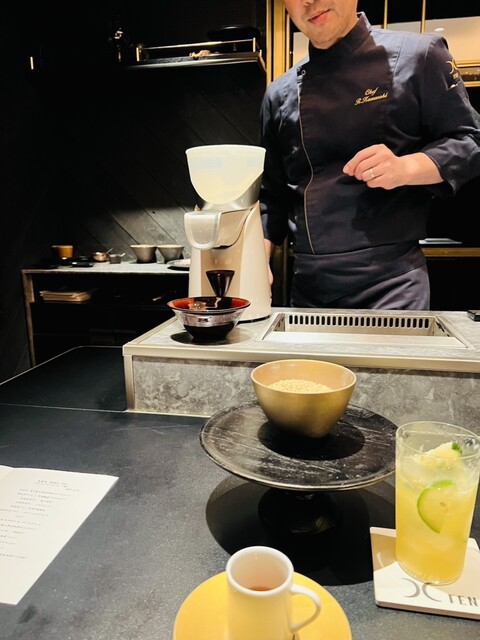 宙コースとアルコールペアリングをいただきました。重厚感のある完全個室で、落ち着いた上品な空間に一歩入った瞬間から心が高揚します…