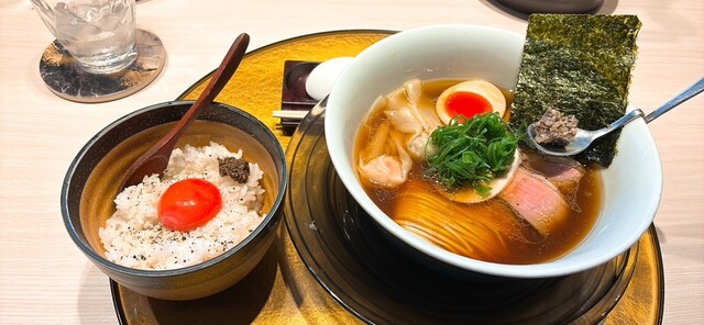 アルティメットボルチー二醤油ラーメン、トリュフ卵かけご飯。