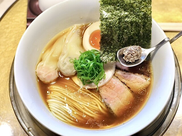 スープは鶏、牛、海老、貝から出汁を取っており、全てが調...