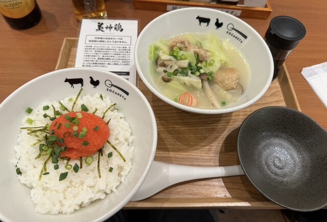 席数は少ないです。 テイクアウトしている人が結構いました。 もしかしたら店頭の冷凍品持ち帰りかもですが。 頼んだのはもつ鍋(醤油)と水炊き。 あとは明太子ご飯の大盛と酢... 詳細を見る