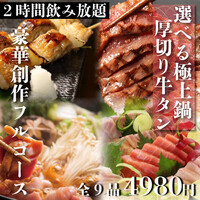 極上フルコース!厚切り牛タン&選べる鍋&旬の刺身3点盛り『豪華宴会コース』2H飲み放題付4980円◎10品