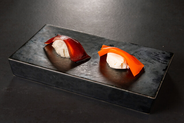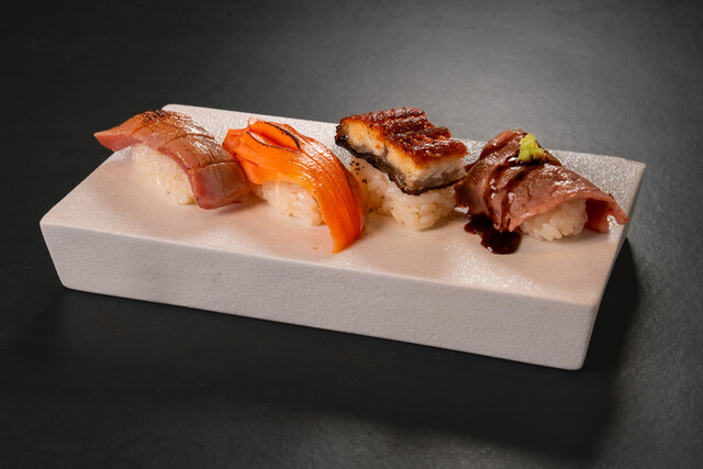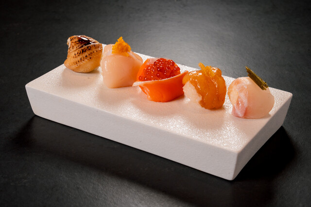 ■ 季節の魚の4種握り(生海老、真鯛、ホタテ、いくら)