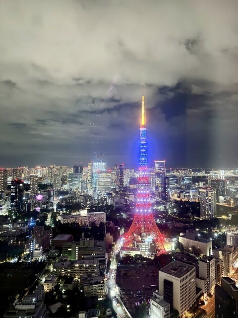 窓外の景色は素晴らしい。立地の高さと1階毎の高さの違いが相まって、33階建てのザ・プリンスパークタワー東京が遥か下に見える。