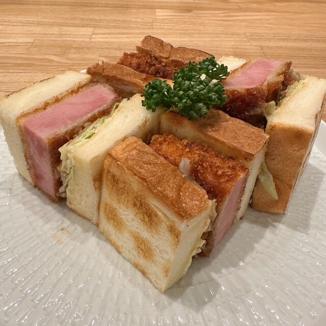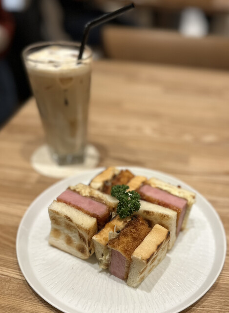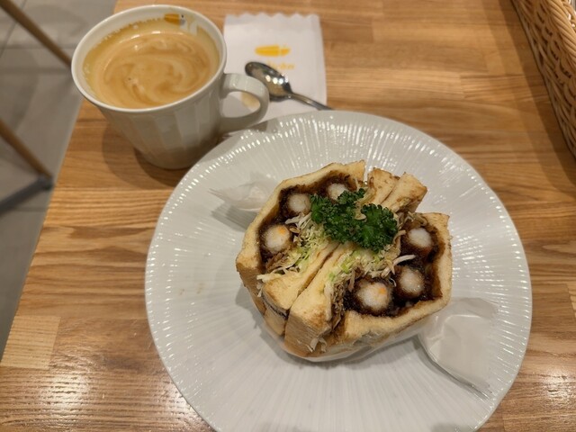 ペリカンの食パンを使ったハムカツと、ラテをセットで注文。