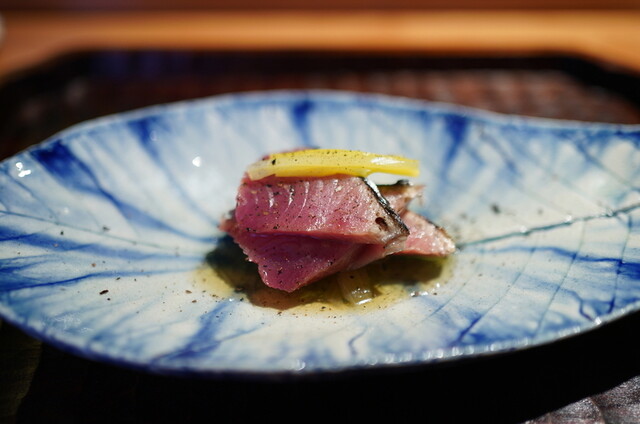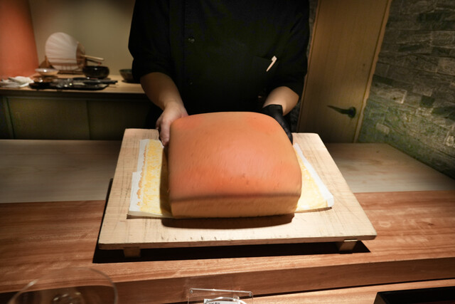 独自の“薪焼き和食”で一躍注目を浴びた「鈴田式」が、麻布十番から西麻布に移転。2024年の1月、リスタートを切った。前店の倍以上の広さとなった店内は炉窯も1つ増え、焼き加減の異なる素材を余裕を持って、より的確に焼けるようになったとか。コース内容は大きくは変えず、一つひとつをブラッシュアップ。名物の“椎茸の薪焼き”も、傘に椎茸を発酵させたペーストを詰めて焼くなどさらに深みのある美味を追求している。