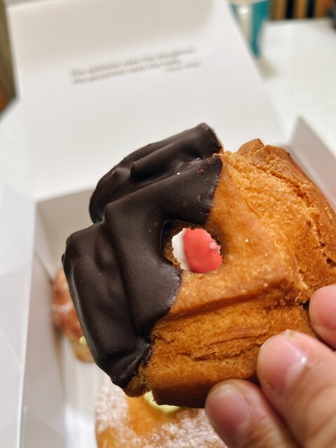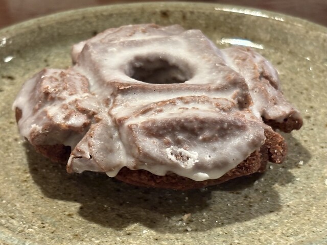 モチモチでしっかり弾力のある生地。昨今の生ドーナツ食感の流れに乗っかることもなく、我が道を行くお店。今回は一番目を惹くブルーオランジェをチョイス。こんなにビビッドな原色系ブルーを使うドーナツにお目にかかれるのは今や海外くらい。六本木で頂けるのはある意味希少です。