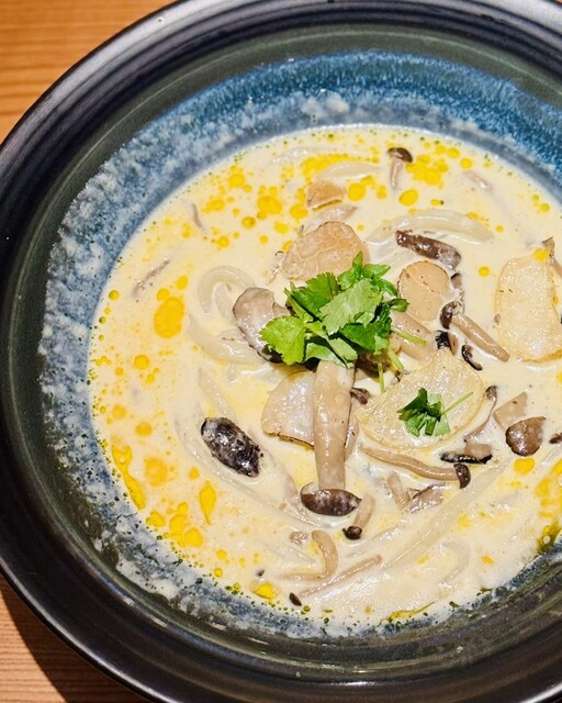 冷たいおうどんはしっかりとしたコシがあり、つるっとした喉越しが心地よい。山芋のとろろがたっぷりとかかっており、まろやかな口当たりで麺とよく絡みます。出汁の風味...