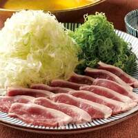 白葱と青葱と一緒に合鴨をお愉しみいただける鴨しゃぶ鍋。 ポン酢でお召し上がりくださいませ。 〆のおうどん付。