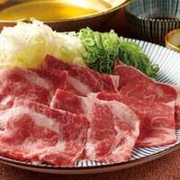白葱と青葱と一緒に国産牛ロースをお愉しみいただける牛しゃぶ鍋。 ポン酢とごまだれでお召し上がりくださいませ。 〆のおうどん付。