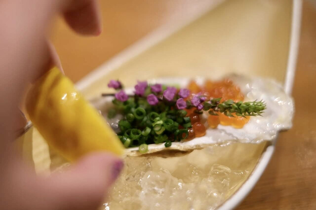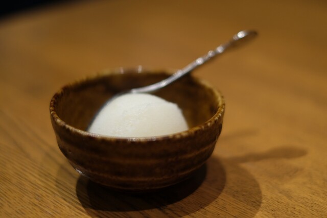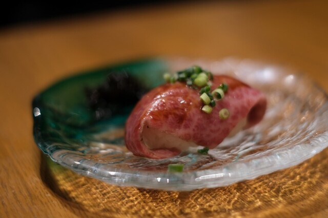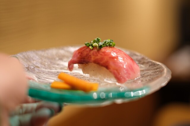 〆ご飯には牛トロ炙り寿司に牛出汁スープといった魚介だけに止まらないメニュー構成も楽しくついつい飲み過ぎてしまいます。季節のデザートは津軽のりんごシャーベットでした。何度でも訪れたくなる良店です。