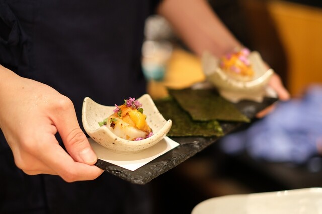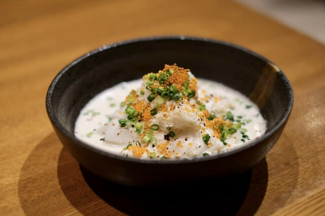 おまかせコースと悩みましたが、今回はいつも気になっていたグランドメニューからアラカルトでお願いすることに。1度食べてみたかった帆立と大根の真っ白サラダ(980円)は色んな意味で想像を超えてくる美味しさ!葉物を使っていないためおつまみ感覚でいただけるのも良いですね。