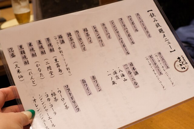 | ドリンク | 日本酒あり、焼酎あり、日本酒にこだわる、焼酎にこだわる |