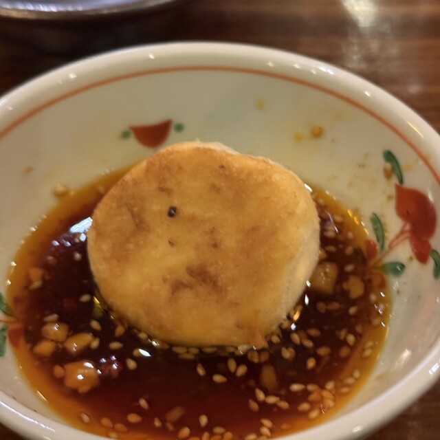 本日のコースは、前菜から構成の完成度が高い。五種盛りはよだれ鶏、クラゲ、味玉、豆腐などが並び、それぞれがしっかりと味の輪郭を持ちながらも、過度に主張しないバランス型。特に大山鶏のよだれ鶏は、辛味と香味油のコントラストが程よく、食欲を確実に引き上げてくる。
