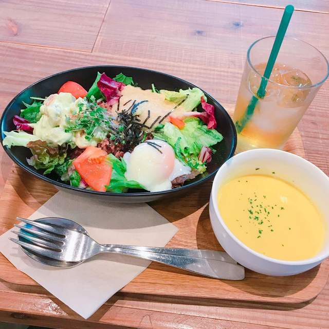 遅めのランチで利用しました。 テーブルに案内される前に、入ってすぐのキャッシャーでオーダーをします。 レジ横にランチメニューのボードがあり、どれも野菜がたくさん摂れそうなものばかり♪ その中から、 『黒豆十穀玄米のベジタリアンタコライス』と 『ひよこ豆と冬野菜の十穀玄米トマトカレー』を共にセットでオーダー☆ お好きな席へどうぞ、ということだったので空いてるテーブル席へ座り周りを... 続きを読む»