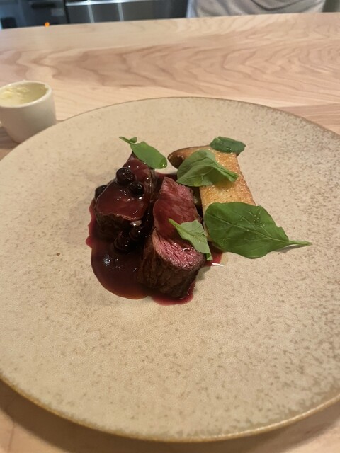 ●えぞ鹿のロース。カシスを使った赤ワインソース