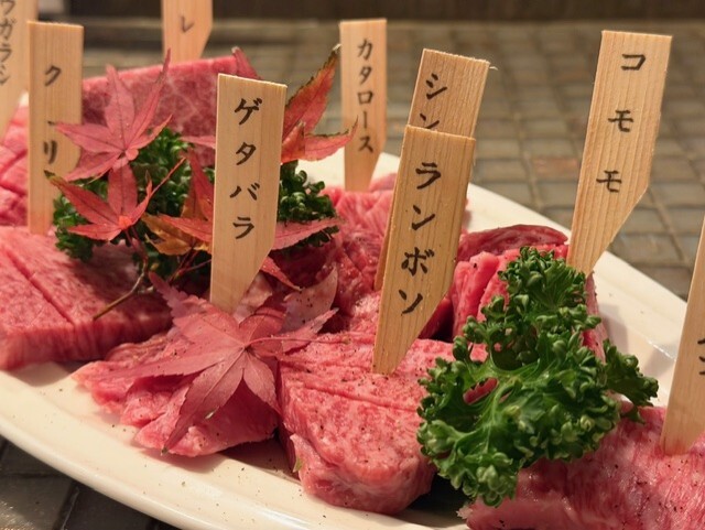 コースで注文しましたが、どのお肉も頬が落ちるほどの美味さ、、霜降りも赤身も全て大満足!