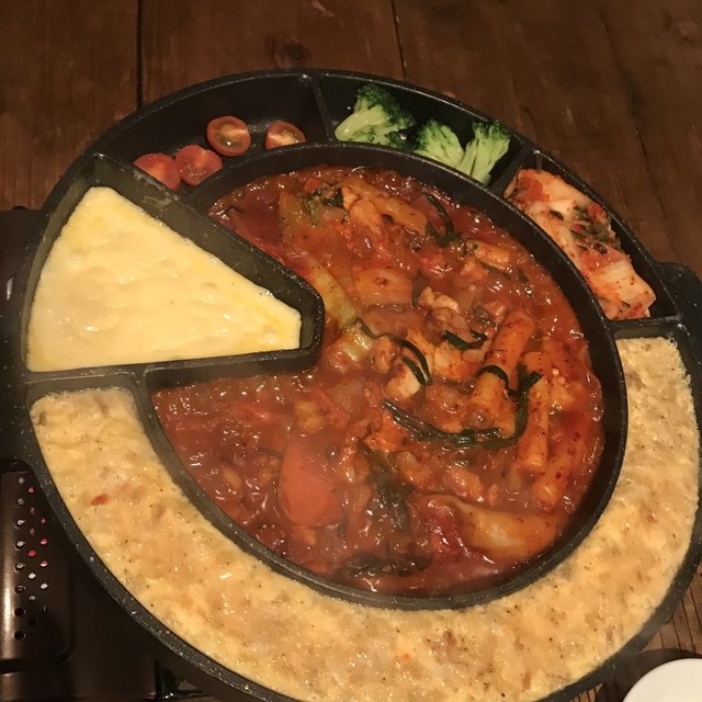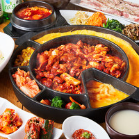 当店イチ押し! 大人気メニューのチーズタッカルビ 甘辛な味がやみつきな話題の一品! とろ〜りチーズでご飯もお酒も進みます チーズタッカルビをメインに、人気のスンドゥブを含む8品コースです