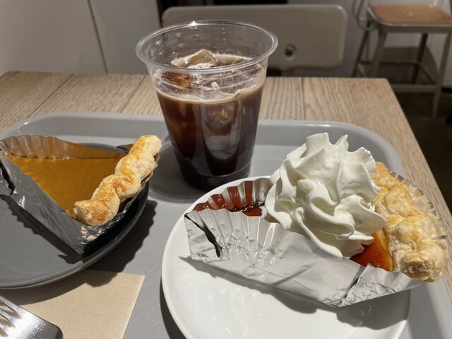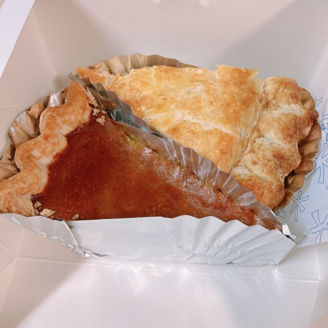 左上クランブルアップルパイのクランブルの食感がよい。りんごもシャキシャキ。オープン待ちして焼きたてを購入。焼きたてってこんなにおいしいんだと感動。左手中央スイートポテトパイもすごい。さつまいもの甘みと...