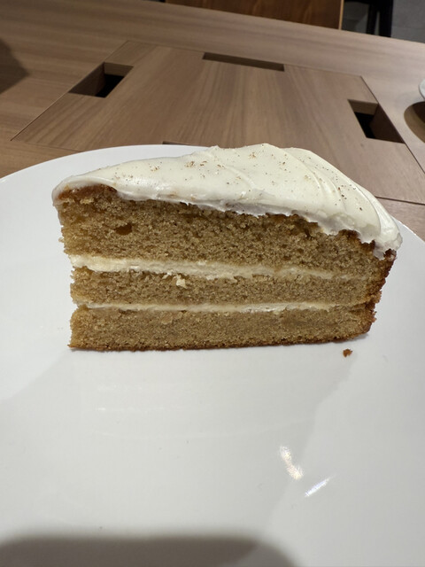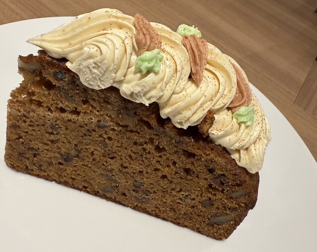 アイシングはジンジャーの味がきつくてとてもおいしかったです!ケーキ自体はほんのりとパンプキンの味がしました。