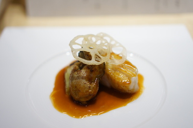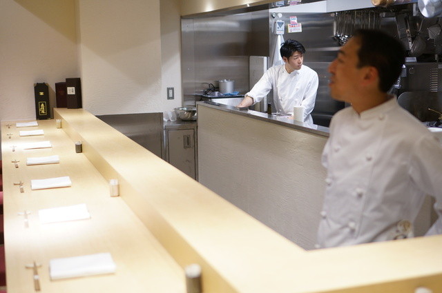 カウンターのみ17時~23時までアラカルトのみでも楽しめるようになりました。気軽にカウンターでお楽しみください。カウンターは予約なしで御来店可能です。カウンター単価5000円~8000円 和食とフレンチの饗宴コースを御用意しています。 カウンターのアラカルトでは、和食とフレンチの双方の良いところをお楽しみください。 |