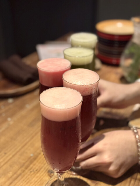 ケールやビーツを6時間以上漬け込んだというお酒たち。