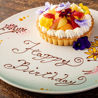 季節のアミューズや前菜に加え、シグネチャーであるスペシャリテのスープ、さらには魚料理まで組み込んだ充実のコースです。 メインには銘柄豚を用いた一皿をご用意し、デザートは季節のフルーツを使用したタルトのホールケーキで華やかに演出。 誕生日や記念日だけでなく、就職・昇進・入学卒業・歓送迎など人生の節目を彩るお祝いにも適したアニバーサリープランです。