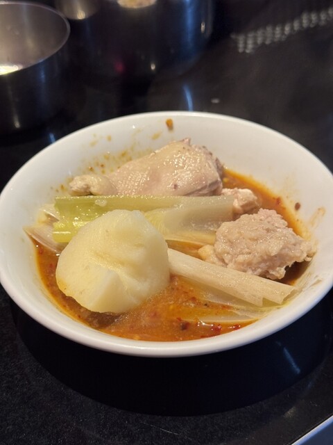 【至福の韓国料理フルコース】 前菜のキムチから、〆の麺まで止まらない美味しさ。 とろ〜り伸びるチーズボールに、甘辛がクセになるヤンニョンチキン。 メインは、鶏の旨味が凝縮された優しい味わいのタッカンマリ! 最後の一滴までスープを吸わせた〆の麺は、まさに至福のひとときでした。 韓国料理好きにはたまらない、ボリューム満点のラインナップです。