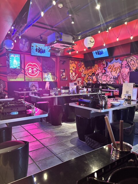 店内の壁は赤・黒を中心にポップな仕上がり。