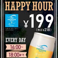 【HAPPY HOUR!毎日開催!!18時までドリンク1杯218円!】生ビール、ハイボール、ワイン、サワー、日本酒、焼酎、マッコリ、ソフトドリンク含む約40種!(グラス交換制で時間内なら何杯でもOK)