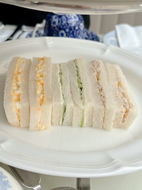 サンドイッチもきゅうりや卵、ツナなど3種類あって、甘いものの合間に食べるのがまた美味しいんです。