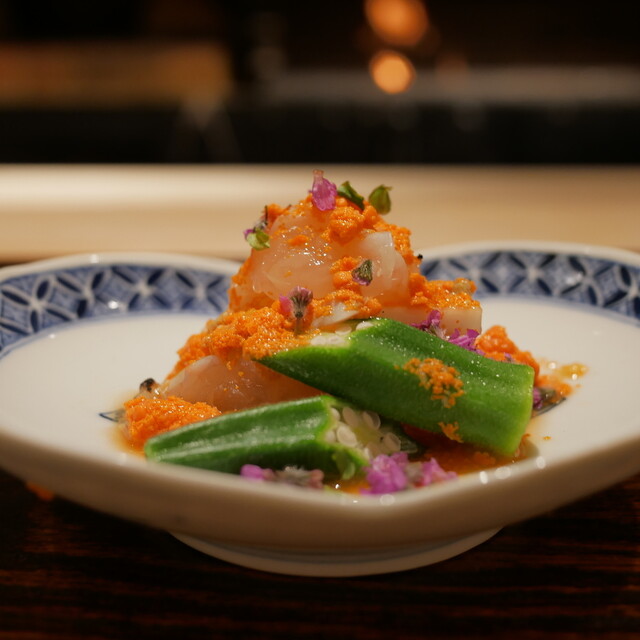 本日は、2か月振りの麻布室井さんへ。 出てきたのは下記。 〇伊勢海老、うど、おくらの生姜すだちポン酢 伊勢海老の味噌がたっぷり。 旨いです。 〇海苔の天ぷらと雲丹の昆... 詳細を見る