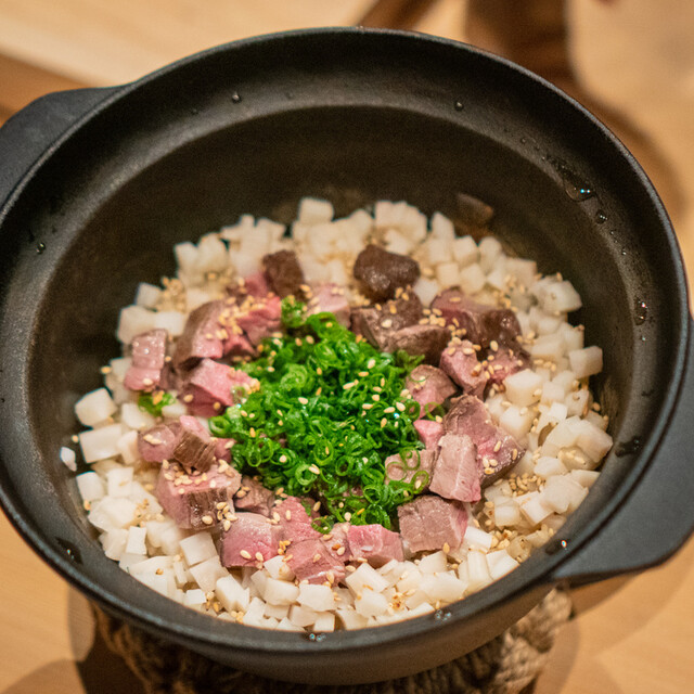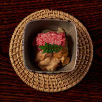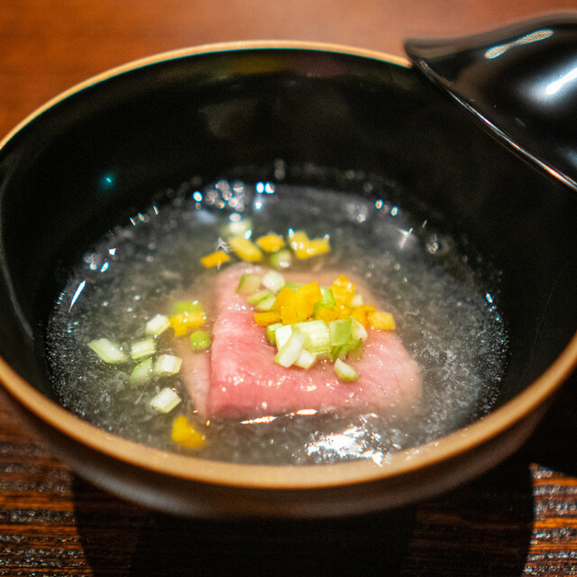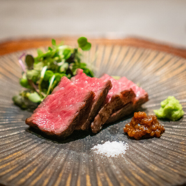 牛肉の『旨味/イノシン酸』と日本酒の『旨味/アミノ酸』を主体に、 日本料理の技法を掛け合わせた相乗価値を体験する限定コースです。 料理に合わせて、日本酒(45㏄)6杯提供いたします。 日本酒唎酒師である店主ならではのコースとなっております。 別途 +¥4,000(税込)にて 【フルペアリング 9杯】もございます。 備考欄にてお申し付けください。