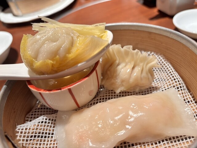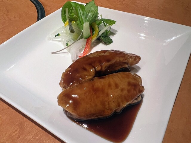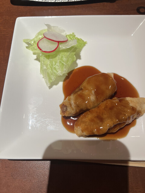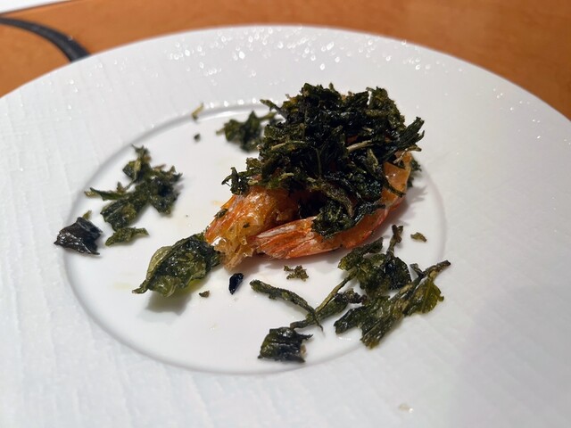 サクサクの衣に包まれた海老は、噛むたびに甘みが広がり、龍井茶の香りが上品さを添えています。