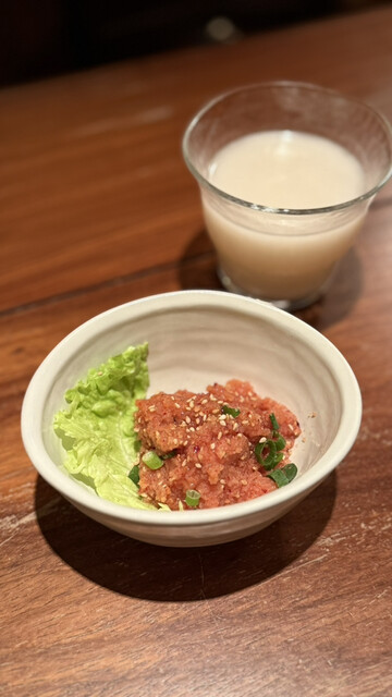 娘はマッコリをオーダー、微炭酸で飲み口良さそう。