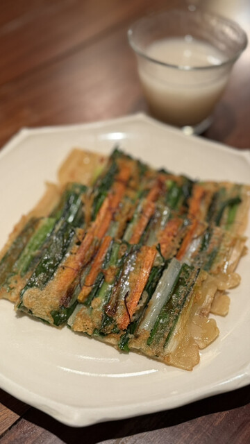 金曜日19時訪問。マッコリボトルから注文。 お料理は、 キムチ盛り合わせ 1100円 韓国風ナムルと豆腐の冷奴 950円 ネギチヂミ 1100円 蒸し豚の野菜包み 250... 詳細を見る