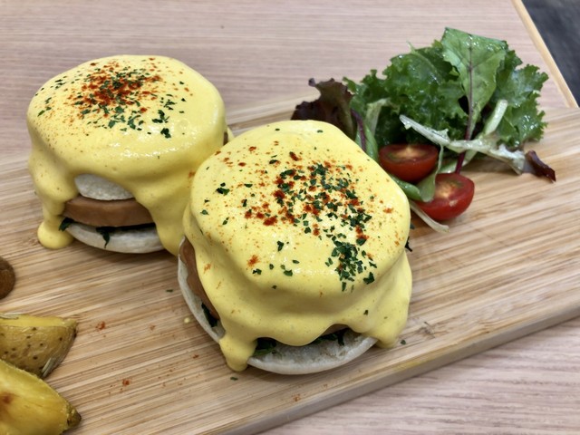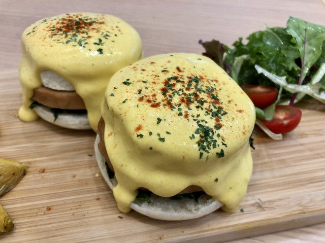 ◆出色の一皿に変えて トーフ・ベネディクトは 本体は豆腐のパテに大豆で作ったソイハム、ほうれん草、 特注マフィンと云う構成で、 オランデーズ・ソースに模し... 続きを読む»