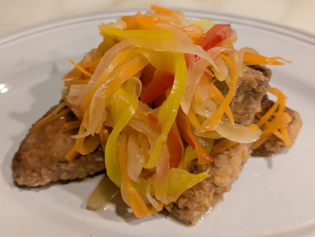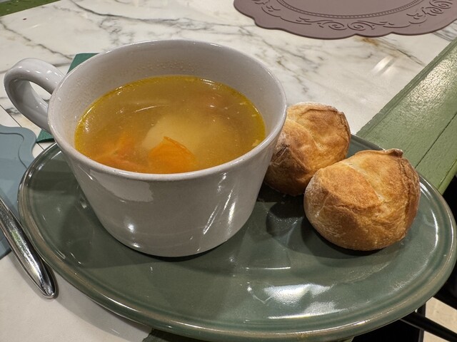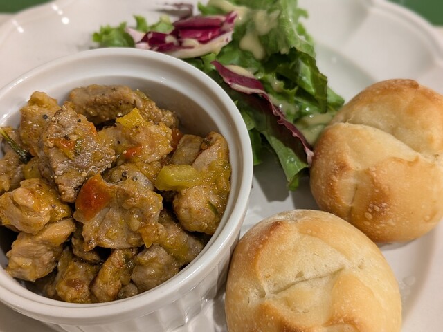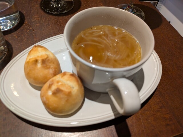 1階はワインバーみたいに見えるので、ふらっと商店街を通るとおいしいランチを提供するビストロに見えないかもしれない。2階に上がるとゆったりと静かなスペースでワインセラーも置いている。料理のクオリティーからするとワインが欲しくなる。残念ながら車で来ているためアイスコーヒーをお願いする。アイスコー... 詳細を見る