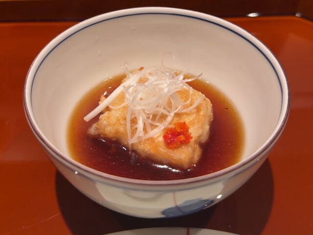 初訪問の 心米 さん。 今回はコースをいただきました。 ◆ ばんざい三種 ・京都府産 黒豆枝豆の塩茹で ・静岡県産 いちじくの胡麻和え ・季節の無農薬野菜のきんぴら ◆ 揚げ出汁豆腐 宮城県仙台市「兎豆屋」在来大豆の絹ごし豆腐を使用。 赤柚子胡椒と無農薬ネギがアクセントに。 ... 詳細を見る