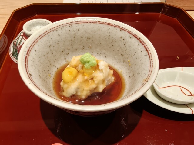初訪問の 心米 さん。 今回はコースをいただきました。 ◆ ばんざい三種 ・京都府産 黒豆枝豆の塩茹で ・静岡県産 いちじくの胡麻和え ・季節の無農薬野菜のきんぴら ◆ 揚げ出汁豆腐 宮城県仙台市「兎豆屋」在来大豆の絹ごし豆腐を使用。 赤柚子胡椒と無農薬ネギがアクセントに。 ... 詳細を見る