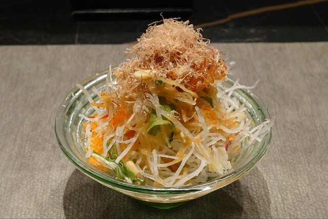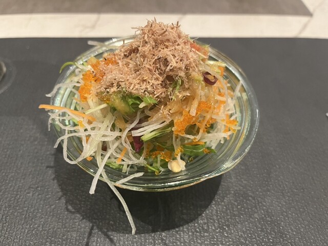 ミニサラダは、オカカが乗った和風...
