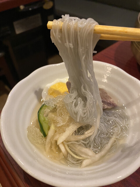 冷麺は極細麺が冷んやりスープと絡んでこちらも美味です。