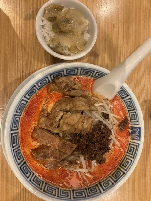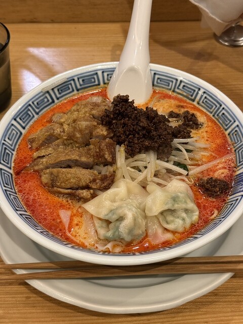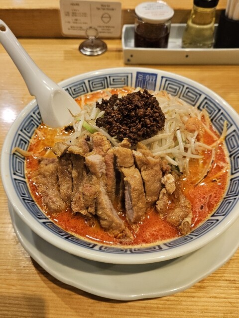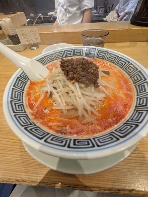 胡麻がしっかり香る王道の担々麺で、期待を裏切らない完成度でした。中太と細麺の中間ほどのストレート麺は喉越しが良く、濃厚な胡麻スープとよく絡みます。具材はもやしとニラというシンプルな...