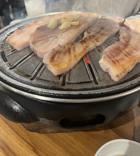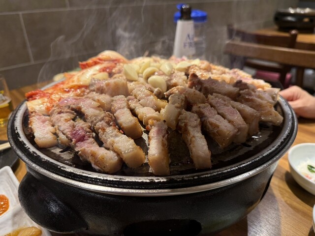 仕事の打合せを早めに切り上げ、午後5時過ぎ、男3人、ハッピーアワー気分で入店。 韓国ビール、生マッコリ、名物豚生三段バラ肉(サンチュ付き)、水キムチ、チョレギサラダ、ニラ唐辛子チヂミ、をオーダー。〆は石焼きビピンパと迷ったがキムチチャーハンをセレクト。 いやもう全品ハズレ無し、全メニュー大当たり... 詳細を見る