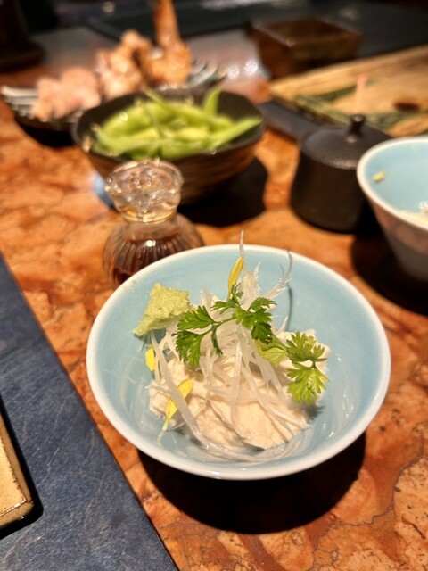 デートや合コン、しっとりめの少人数飲み会で絶対外さない、東カレで紹介されそうなお店。 おしゃれな飲食店が立ち並ぶ赤坂のエスプラナード通りの中。仄暗い階段を降りると、ライティングされた『いやま』の文字。 店内は照明が暗めで、大理石のカウンターや、その奥のライトアップされた壁面がとってもオシャレ。 6,100円の飲み放題コースを頼みました。 嬬恋産の、甘くて瑞々しいパリパリキャ... 詳細を見る