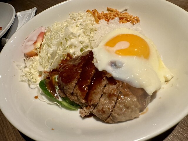 18時からのディナーは国産牛100%ハンバーグや肩ロースステーキなど腹ペコも安心のメニューあります。コース、人数により貸し切り可能(要相談)まずはお電話を。