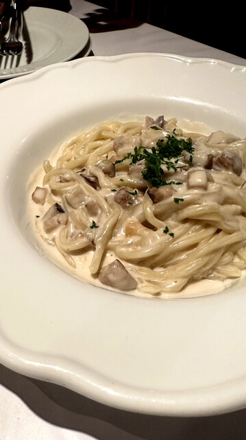 アルザス風タルトブランベには、グラインドしたマッシュルームをほどこしたり、こだわりの料理は素材から美味。骨太だけど繊細な旨みを感じる品々、パスタはモチモチ感も印象的でした。